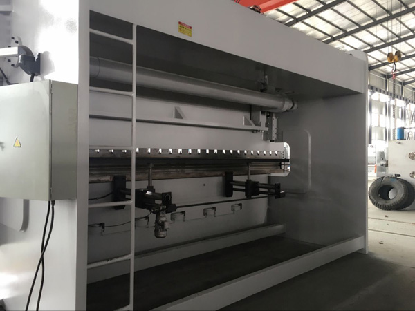 2、采用扭轴同步,在滑块两端装有2个同步摆臂,,使滑块动作始终与工作台保持平行, 工作时抗偏载能力强。油缸下限行程机械档块定位,连续工作折弯角度不漂移。上模加装挠度补偿机构,折板精度高。